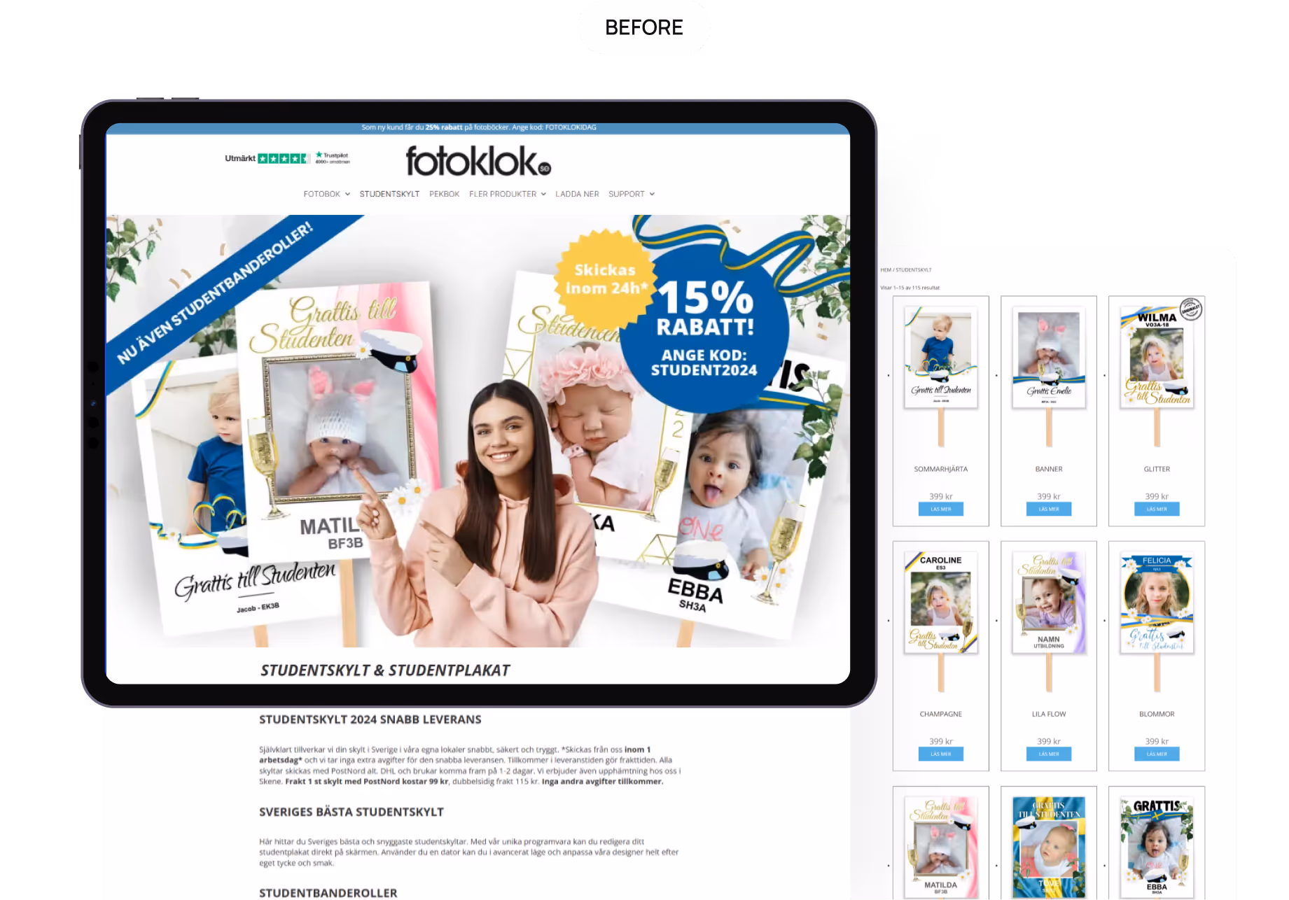 Fotoklok is a Swedish company that has been turning memories into photobooks, calendars, and student signs since 2010. Their products are all about family, tradition, and special moments. But their website wasn’t reflecting this.