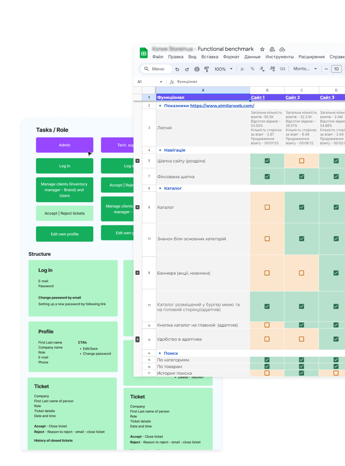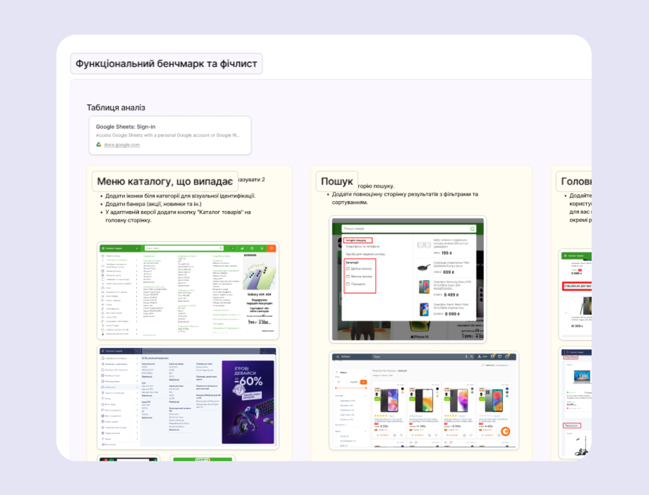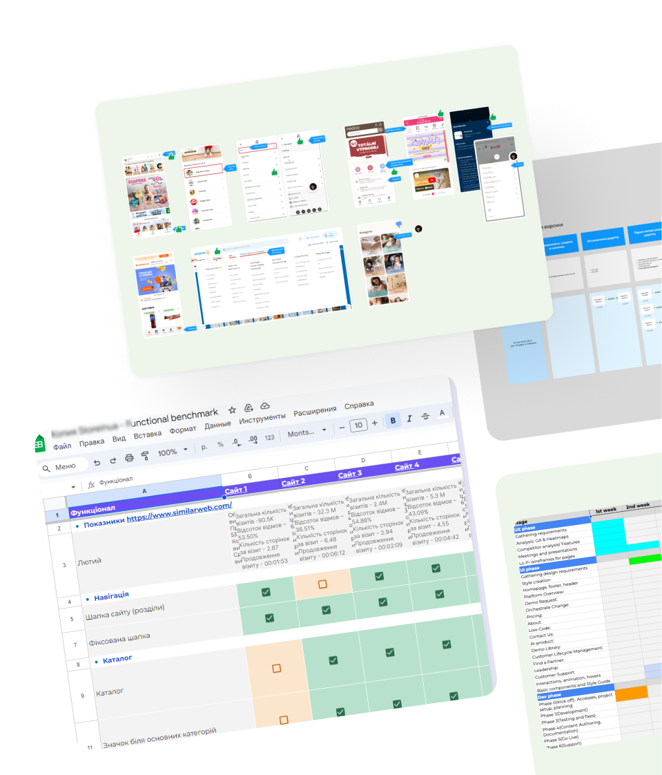 Competitor research can range from collecting screenshots of competitor features and user flows in Figma to a more detailed analysis focused on specific product characteristics.